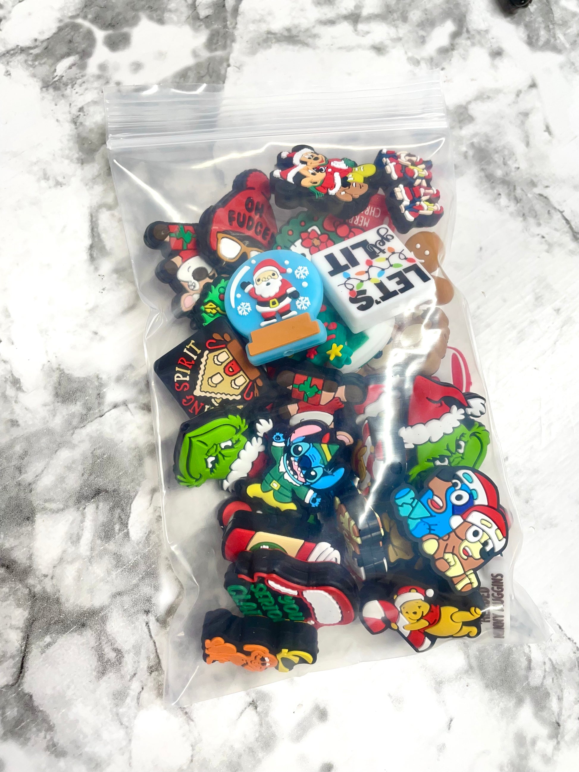 We have put the exact same amount of all of our CHRISTMAS silicone focal beads (characters included) into a bin, and we pull these scoops directly from that bin. (As we get more Christmas focals in, we restock the bin and add them to it).